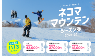 シーズン159日+お得感満載。ネコマ マウンテンの超早割シーズン券が10月1日(水)より販売開始