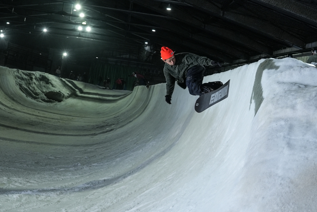 全長100m、高さ4mの室内ハーフパイプは日本の誇り
