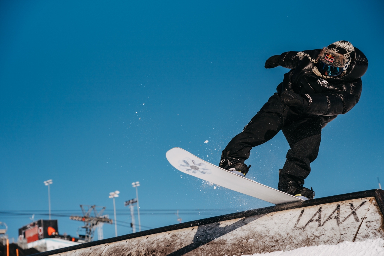 そして、BLOSSOMはフリースタイルを体現するモデルだ。「テイクオフ時の一瞬の動作にも対応してくれ、ジャンプの衝撃にもしっかり耐えることができる。ジャンプ、ジブのどちらでも自分の動きにすぐ反応してくれるので、滑っていてとても楽しい」と荻原大翔が評するように、ツインチップの扱いやすさと素直なレスポンスは、ライダーに余白を残しながら、想像を超える遊び方を許容する。その懐の深さは、どのレベルのスノーボーダーが乗っても感じられるはずだ。