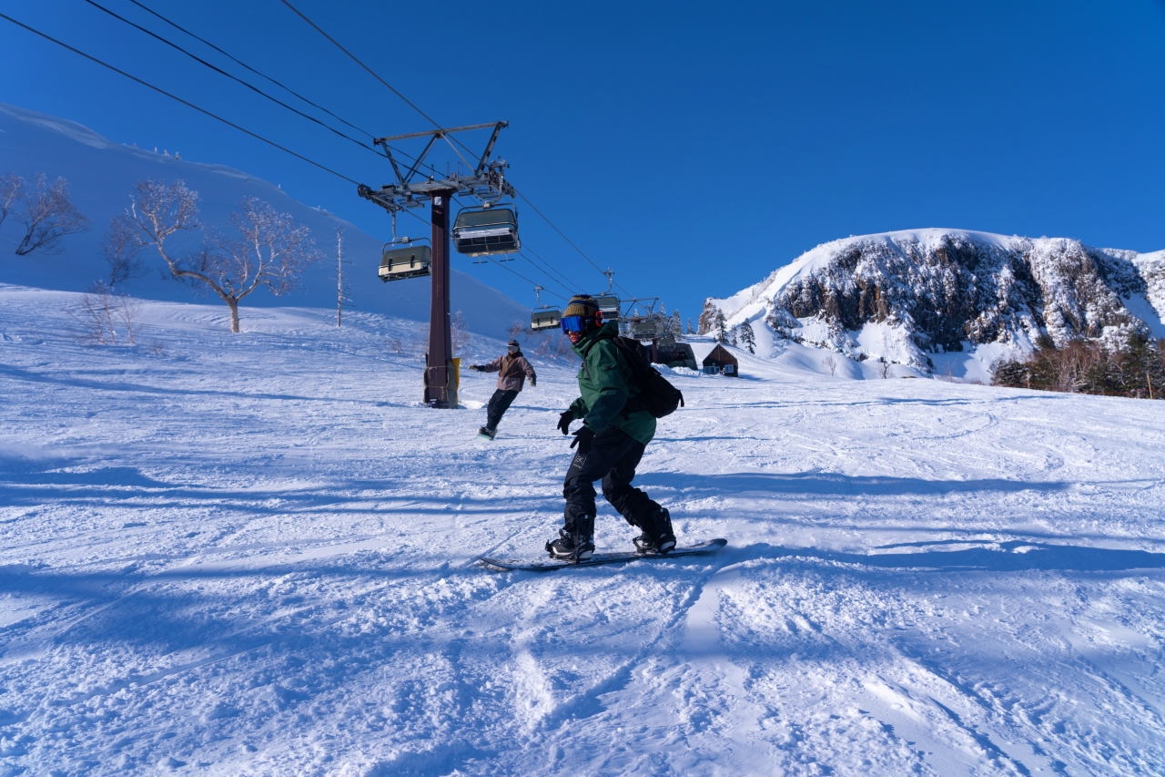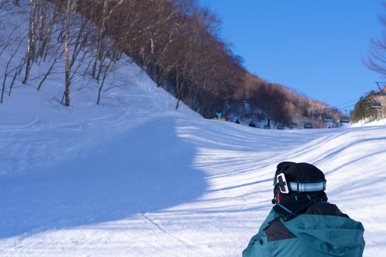 「よし、このまま滑り下りよう。ZIZO(カメラマン)、下のリフト乗り場で合流よろしくー(筆者)」