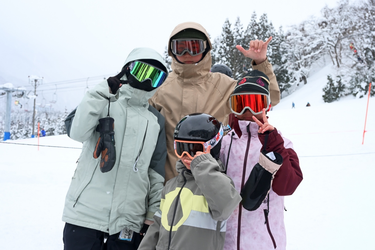 高1から小4までの4兄弟で参加し、父親もエントリーしているという生粋のスノーボード一家、荒井さん。待機列でひときわ楽しそうにコースを眺めていたキッズたちがいたので声をかけると。