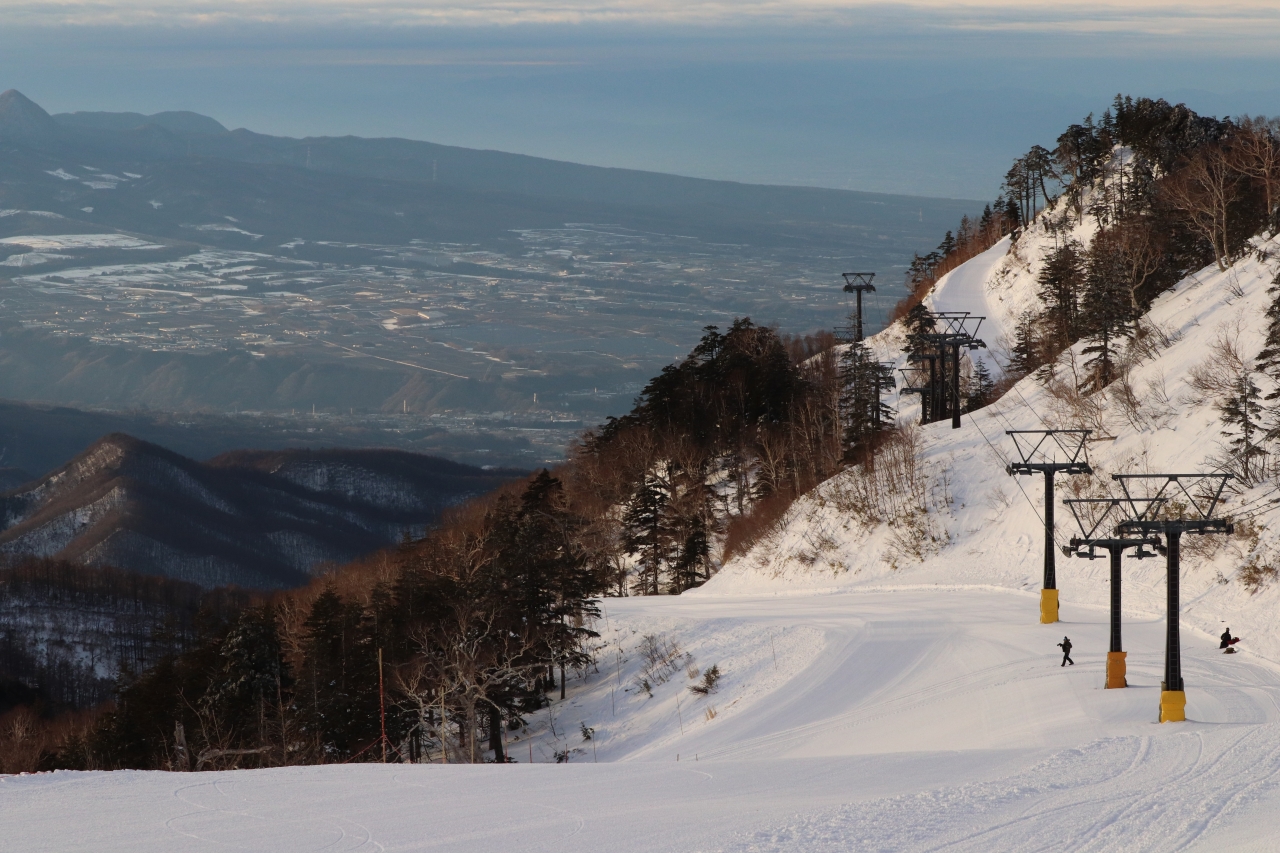 近年、川場では人工降雪機への継続的な投資が行われてきた。その結果、12月の段階からトップ・トゥ・ボトムで最長3,300mを一気にライディングできるポテンシャルを備えている。関東圏のゲレンデにおいて、この早い段階でのロング滑走は、決して当たり前ではない。