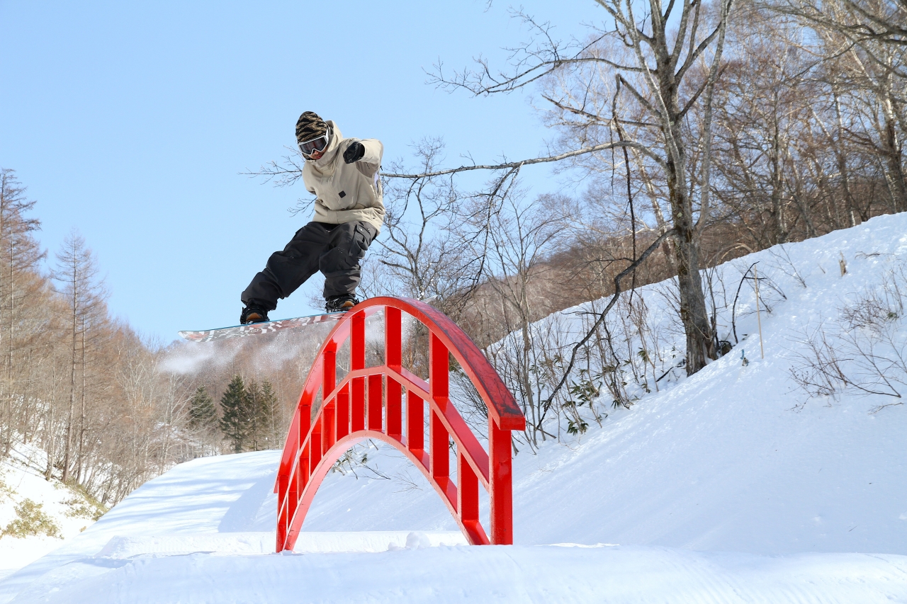 「降り積もっていればパウダーを滑って、地形で遊んで、そのままの流れでパークに入る。この動線が成立してるゲレンデって、実はそんなに多くないと思うんですよ。それにパークに関して言えば、キッカーやヒップは土台からしっかり造られてるし、様々なサイズのアイテムが並んでいるから、レベルを問わず遊べるのがいいと思うんです」