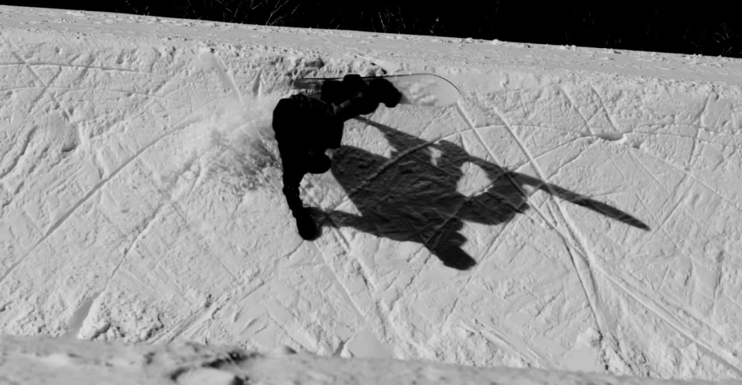 硬く締まったバーンを切り裂くターン、前後の荷重移動、スピードに合わせてボードのRを使う姿勢。 KORUAが磨き続けてきた“ターンそのものの気持ちよさ”が飾られることなく描かれている。