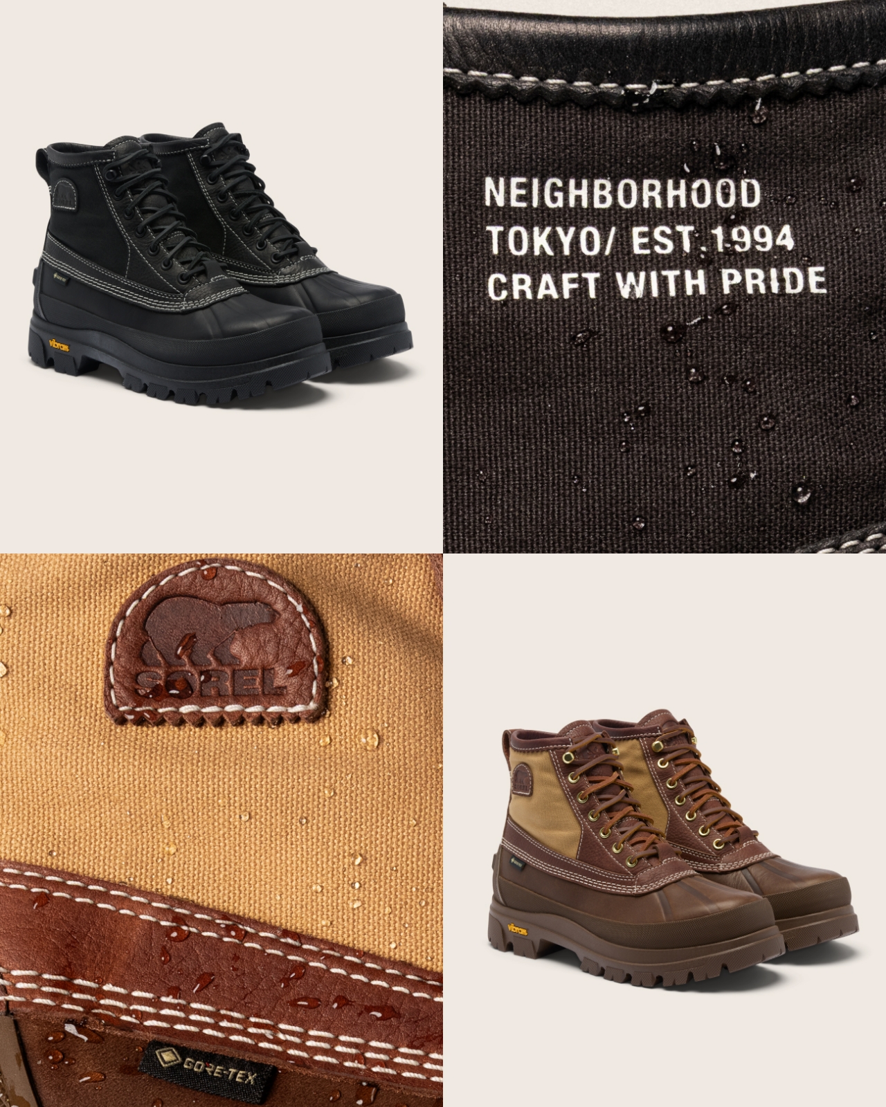 この人選は偶然ではない。1962年にカナダで誕生したフットウエアブランド・SORELは、機能性と耐久性を両立しながら、都市生活にも馴染むデザインを提案し続けてきた。いっぽうのNEIGHBORHOODは、ストリートカルチャーのリアリティを基盤に、オーセンティックなアパレルを再定義し続けている。