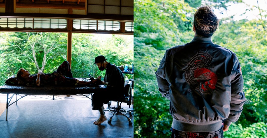 GAKKINとの出会いは、その線と線が必然のように引き合った結果だった。奈良の茶室で施された“尾長鶏”のタトゥー。長くしなやかに尾を引くその姿は、國母が生きてきた軌跡の象徴でもある。GAKKINが皮膚に刻んだ線を、NOMADIKが布に縫い込んだ。MA-1ジャケットの背面に刺繍された尾長鶏、裏地に広がる鶏脚紋。それは、命の線と表現の線がひとつになった証のようだった。