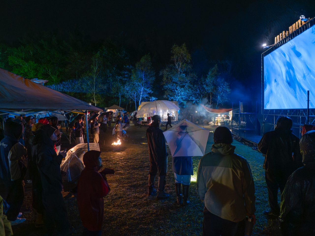 10月18日、長野・Hakuba Valley最北の白馬コルチナ横にあるプライベートキャンプ場・Matka Otariの森の土手に、単管で組まれた300インチの巨大スクリーンが出現。ローカルの手で作られたシアターを舞台に、野外フィルムイベント「AREA UNITE 2025」が開催された。