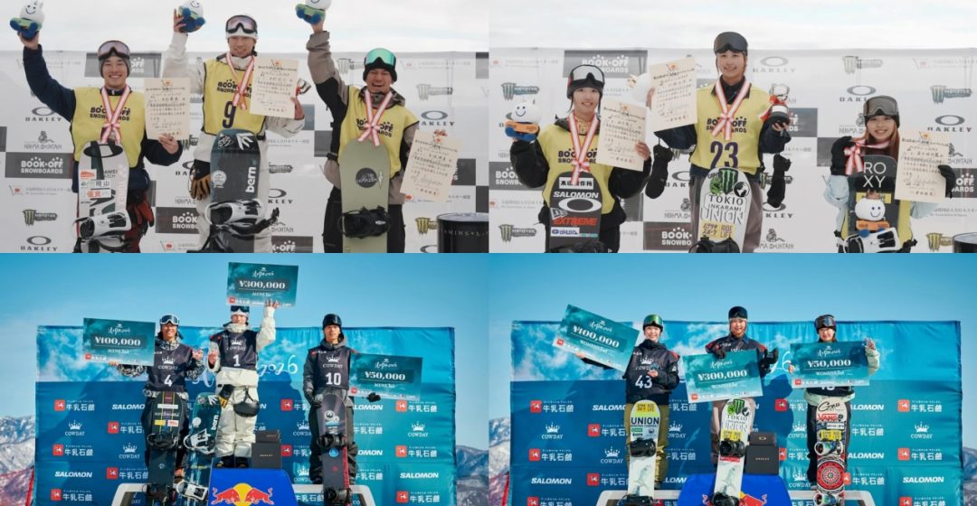そして3日後の3月1日、長野・つがいけマウンテンリゾートで開催された「COWDAY SLOPE 2026」。ビッグエア王者のふたりは、種目が変わっても勢いを失わない。